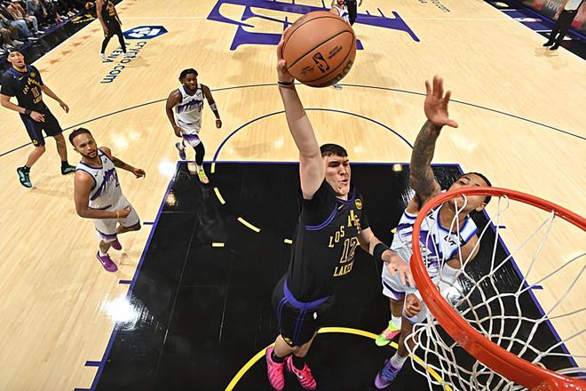 本场比赛中,湖人的替补侧翼新援杰克-拉拉维亚(Jake LaRavia)的表现还是相对不错的。拉拉维亚全场出场25分30秒,投篮10中6,三分线外5中2,罚球3中2,得到了16分4篮板2助攻1抢断的数据,还有1次犯规,正负值为+12。拉拉维亚本场比赛中又一次打出了攻守兼备的表现,他在进攻端能里能外,展现出了全面的得分能力,看起来他的特点与勒布朗-詹姆斯(LeBron James)的打法也是能够很好地兼容。拉拉维亚在防守端也是保持了很高的积极性并且起到了相当不错的效果。总体来看,拉拉维亚在本场比赛中的表现算得上是攻守兼备,他也是很好地扮演了自己的角色并且为球队的这场胜利做出了自己的贡献。