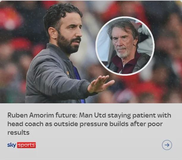 天空体育消息,曼联高层依然对阿莫林保持着耐心,但外界的压力正越来越大。