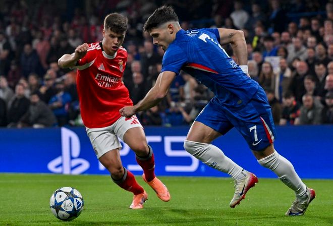 切尔西排出433阵型。佩德罗-内托、乔治和加纳乔的进攻三叉戟联袂出击。博纳诺特、凯塞多和恩佐-费尔南德斯组成3中场。古斯托、查洛巴、巴迪亚西勒和库库雷利亚4后卫首发出战。罗伯特-桑切斯担任首发门将。切尔西首发阵容总身价4.27亿欧元。而本菲卡首发阵容总身价2.25亿欧元。