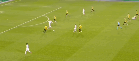 第73分钟,皇马左路快攻,罗德里戈禁区前沿强行突破2,3人包夹巧妙横传,居莱尔禁区内一步策应再轻轻一做,姆巴佩跟进直接右脚大力抽射,皮球飞入球门左下死角,姆巴佩上演帽子戏法,皇马3:0领先。第82分钟,皇马左路快攻,罗德里戈又是强行突破,这次他杀入禁区倒三角挑传门前,后排跟进无人防守的卡马文加小禁区内抢点鱼跃甩头攻门得手,皇马4:0领先。补时阶段,皇马还是左路快攻,连续的传递,贡萨洛禁区弧顶处策应斜塞右侧,迪亚斯跟进拿球小角度半单刀大力抽射,皮球直入远端死角,皇马将比分锁定在5:0。