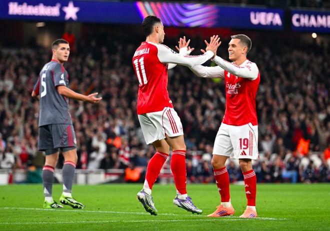 2-0!马丁内利萨卡破门 阿森纳欧冠两连胜0丢球 加布里埃尔伤退