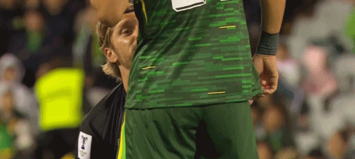 第16分钟,库尔托出球后踩到张玉宁,后者倒在禁区内