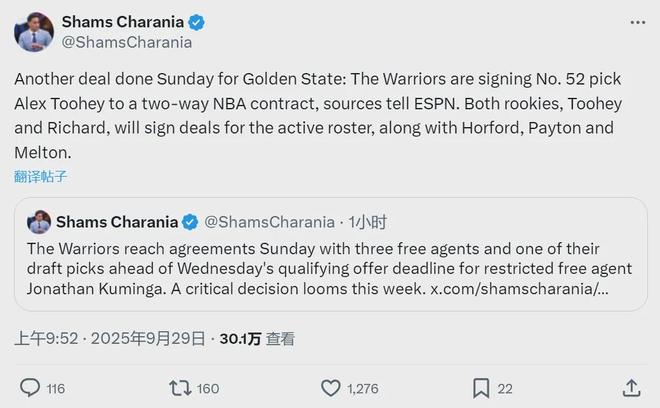彻底杀疯了!刚刚,勇士达成24小时内第六笔签约